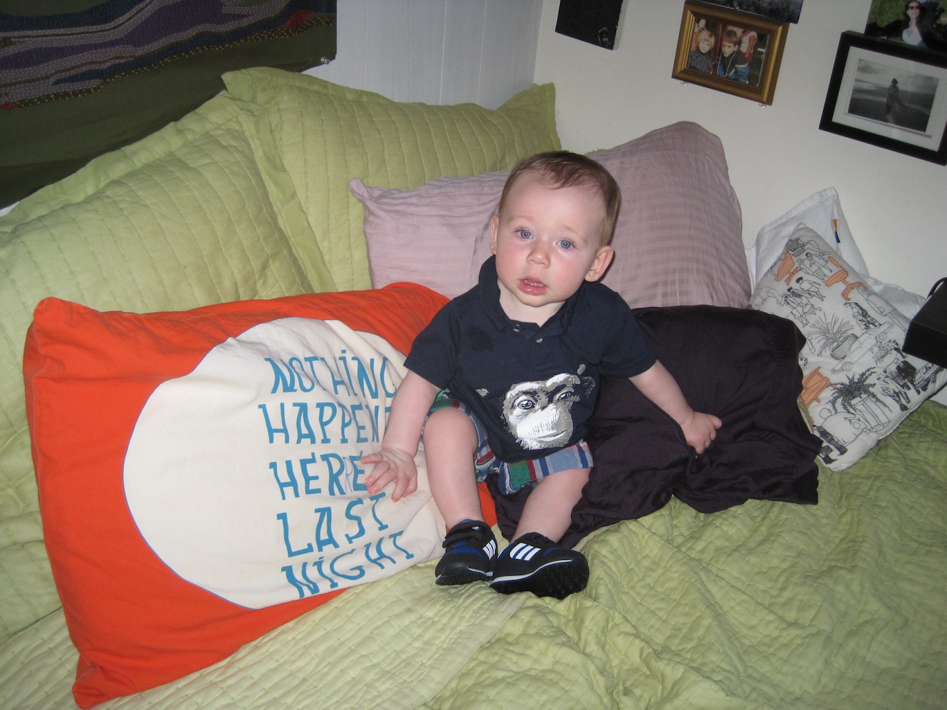 The Butternut squash I got the other day turned out ok. I made a nice pureed baby food for Max. He loved it - loved to smear it all over; His face; The Highchair; Mommy. It was a great success. I have been trying to make him baby food in an effort to save money and make delicious healthy food for him. I was using a organic baby food (Earth's Best) which is great. He really likes it. But I am part of a mom's group here in Brooklyn and one mom had to point out that there is BPA (the bad plastic compound that can leach into things) in the metal lid of the baby food. I look over at the 40 jars I bought, which are sitting in the corner and contemplate if I should continue to give it to him. I feel like not everything that he's going to touch, eat, etc will be "BPA Free." I try my best to be conscious about everything going into his body - but there are certain factors that I have little control off living in a city. Smog, Smoke, Dust. Whats wrong with a little BPA afterall? I'm sure all the bottles used when we (1970's era babies) were growing up were tainted with all kinds of good stuff. And I turned out okay. Or at least I'd like to think so. Am I a horrible mom for letting a little thing like BPA on the lid (which is not really touching the food) not really bother me? I just think of all the moms who take their kids to McDonalds[insert any Fast Food joint here] every day.